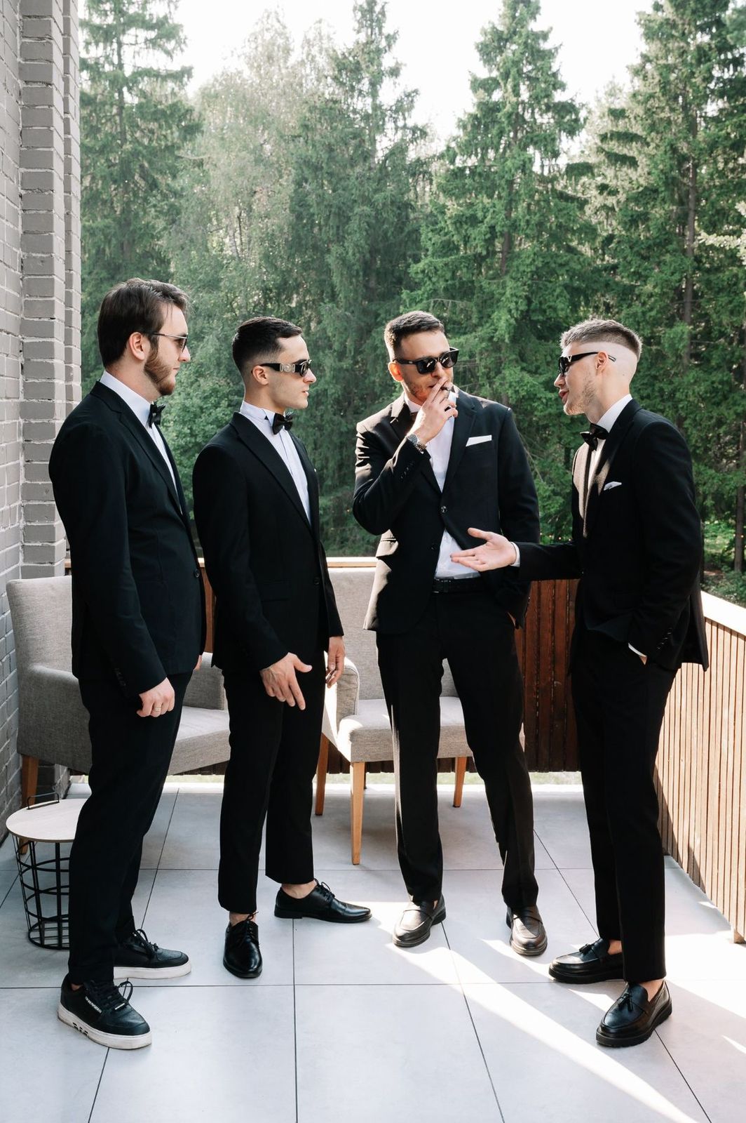Классический костюм черного цвета с белой рубашкой / total black
